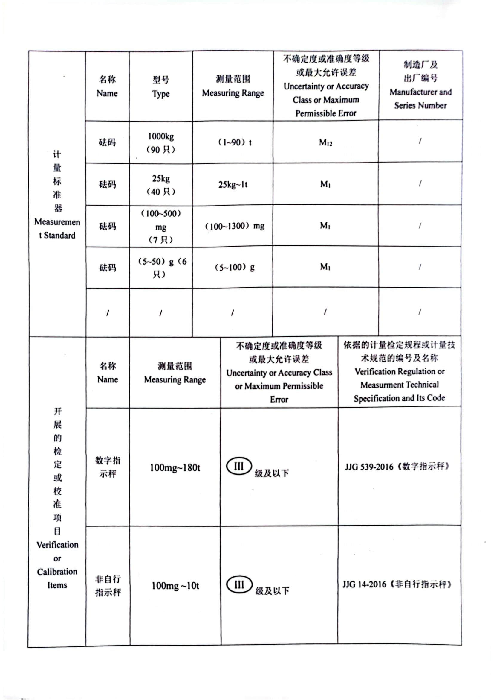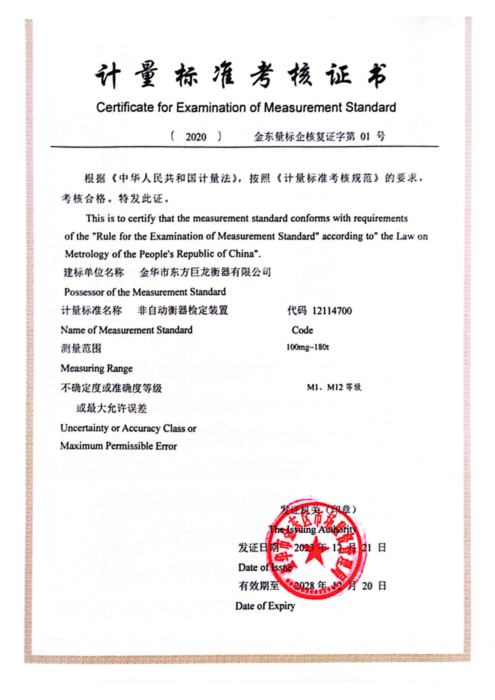 计量标准考核证书